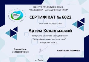 За результатами роботи конгресу всі учасники отримали офіційні сертифікати, які підтверджують їхній внесок у розвиток молодіжної науки.